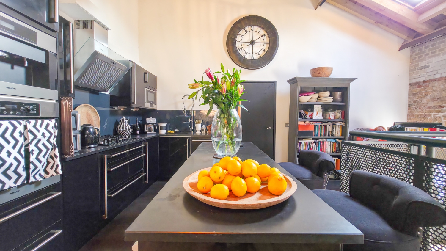 This impressive home is arranged over two spacious levels and offers a rare sense of character and volume, enhanced by striking high ceilings that create an exceptional feeling of light and space rarely found in modern apartments. The generous proportions throughout give the property a distinctive and elegant atmosphere, perfectly suited to both comfortable living and stylish entertaining.