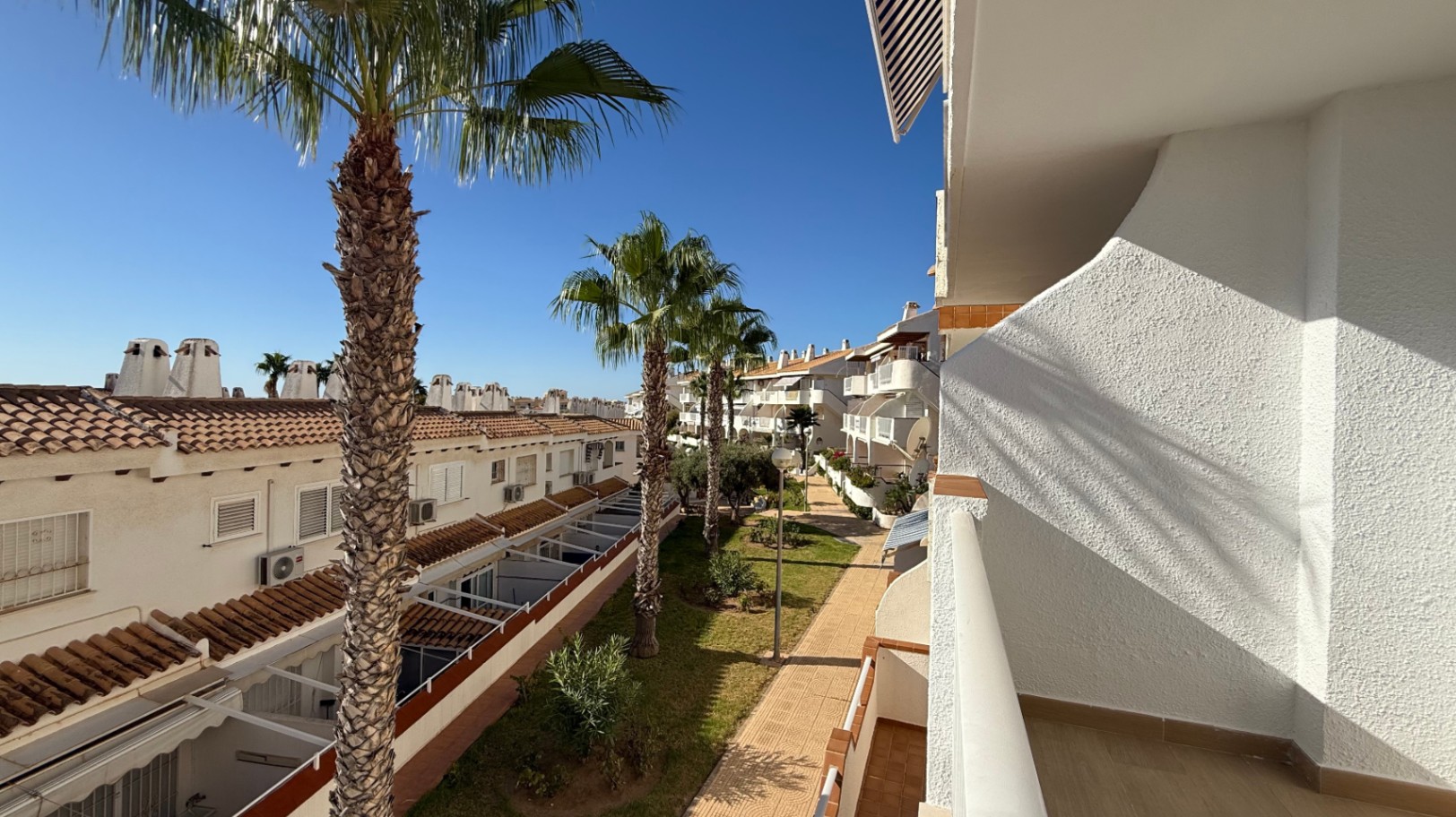 Discover Your New Home in Orihuela CostaLocated in Cabo Roig, in the coveted Orihuela Costa, this attractive Mediterranean-style apartment is the perfect option for those seeking a sunny and comfortable retreat. With a design that reflects the essence of the area, this property promises to be not just a home, but a vibrant seaside lifestyle.Spacious Living Areas to EnjoyWith a built area of 71 m², this apartment offers a smart layout that maximizes every corner. It features two cozy bedrooms ideal for resting and relaxing, complemented by a functional bathroom. The rooms are bright and ventilated, thanks to its favorable east orientation, allowing you to enjoy the gentle rays of the sun from early morning.Private Terrace for Unforgettable MomentsThe jewel of this apartment is its terrace, an ideal space for enjoying an outdoor breakfast or relaxing with a good book while taking in the surroundings. This outdoor nook becomes the perfect setting to share special moments with friends and family, all within the beauty of the Costa Blanca.Amenities That Make Life More PleasantThe property comes with air conditioning, ensuring a cool and comfortable environment during the warm months. Additionally, its furnishings include essentials for you to move in right away and start enjoying your new home. Undoubtedly, the amenities are a valuable addition that enhances the comfort of modern living.An Exceptional Community EnvironmentResidents of this apartment have access to a community pool, perfect for cooling off and socializing. This shared space becomes a meeting point to enjoy sunny days and create new friendships in a relaxed and friendly atmosphere.Live in a Prime LocationOrihuela Costa is known for its impressive climate, beautiful beaches, and a rich array of cultural and recreational activities. From water sports to walks in natural spaces, there will always be something to do. Furthermore, the town offers a variety of shops, restaurants, and services that meet all your needs.This apartment is not just a place to live, but also a gateway to a lifestyle filled with sun, beach, and community. Don't miss the opportunity to become the owner of this wonderful space in an enviable environment.