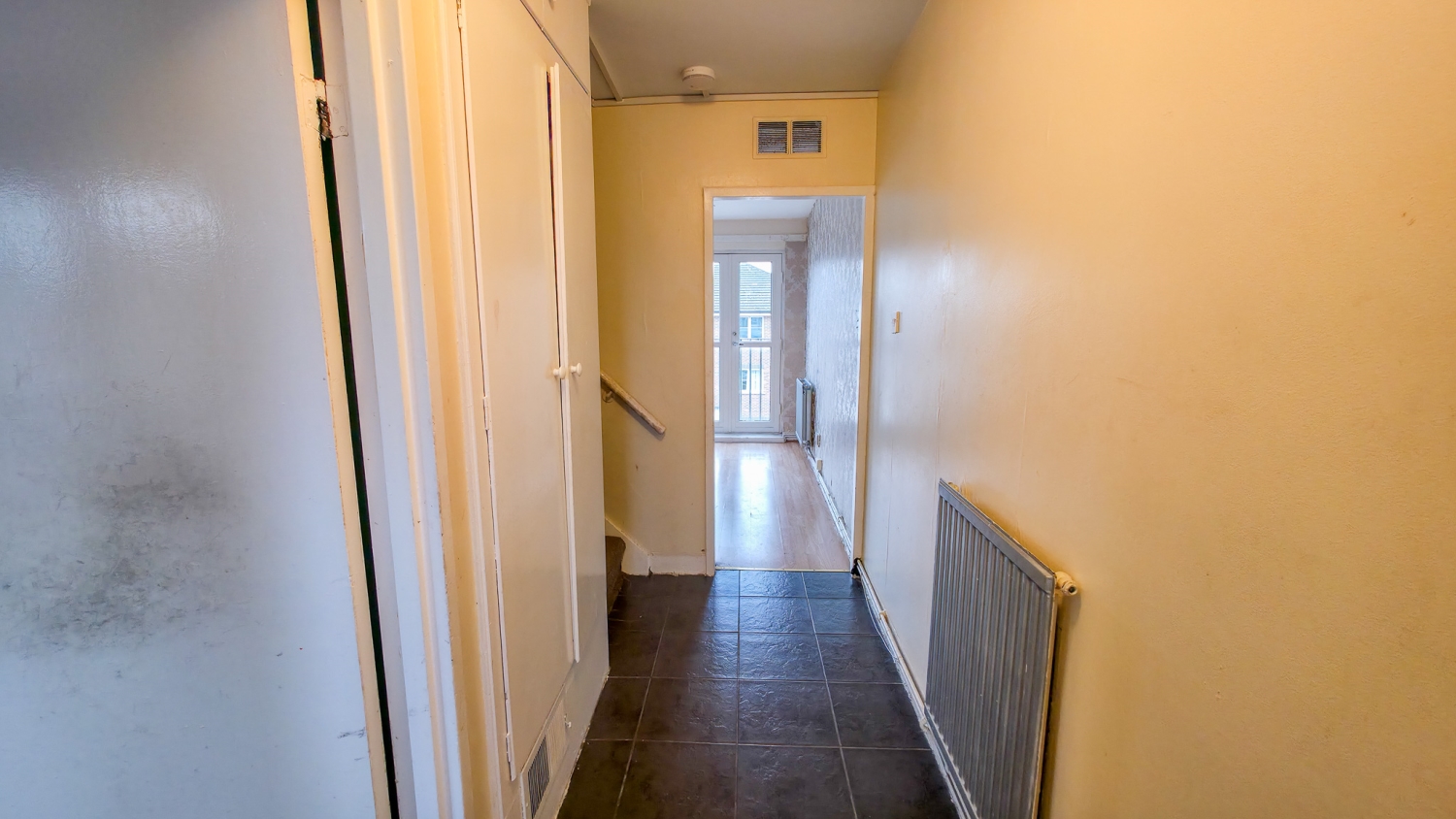 Upstairs, the first floor offers two generous double bedrooms, both with double glazing and good proportions throughout. The bathroom is fitted with a white two-piece suite comprising a panelled bath and wash hand basin, with a separate WC located just next door for added convenience.
