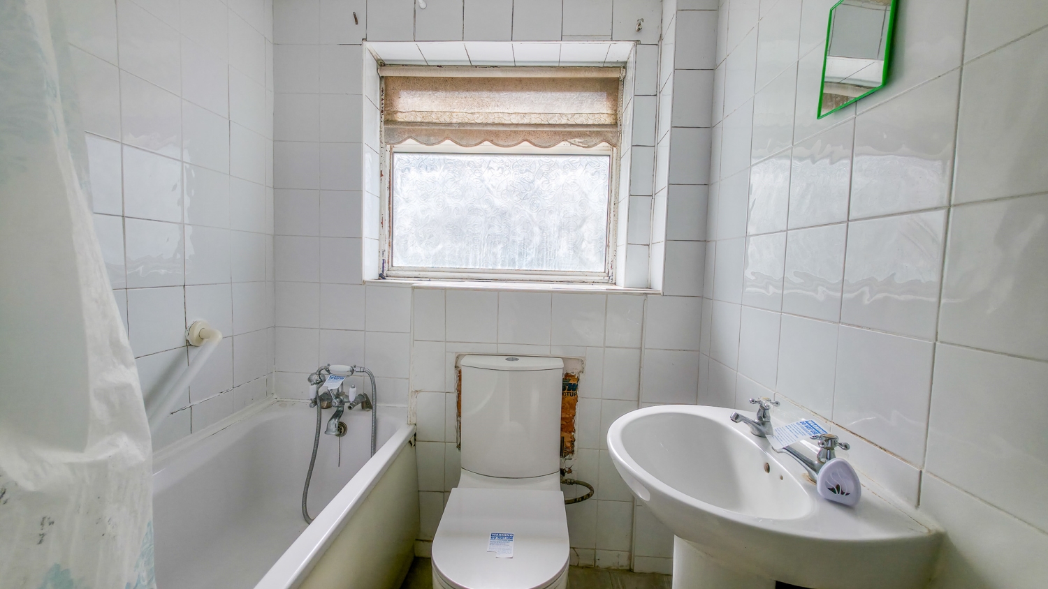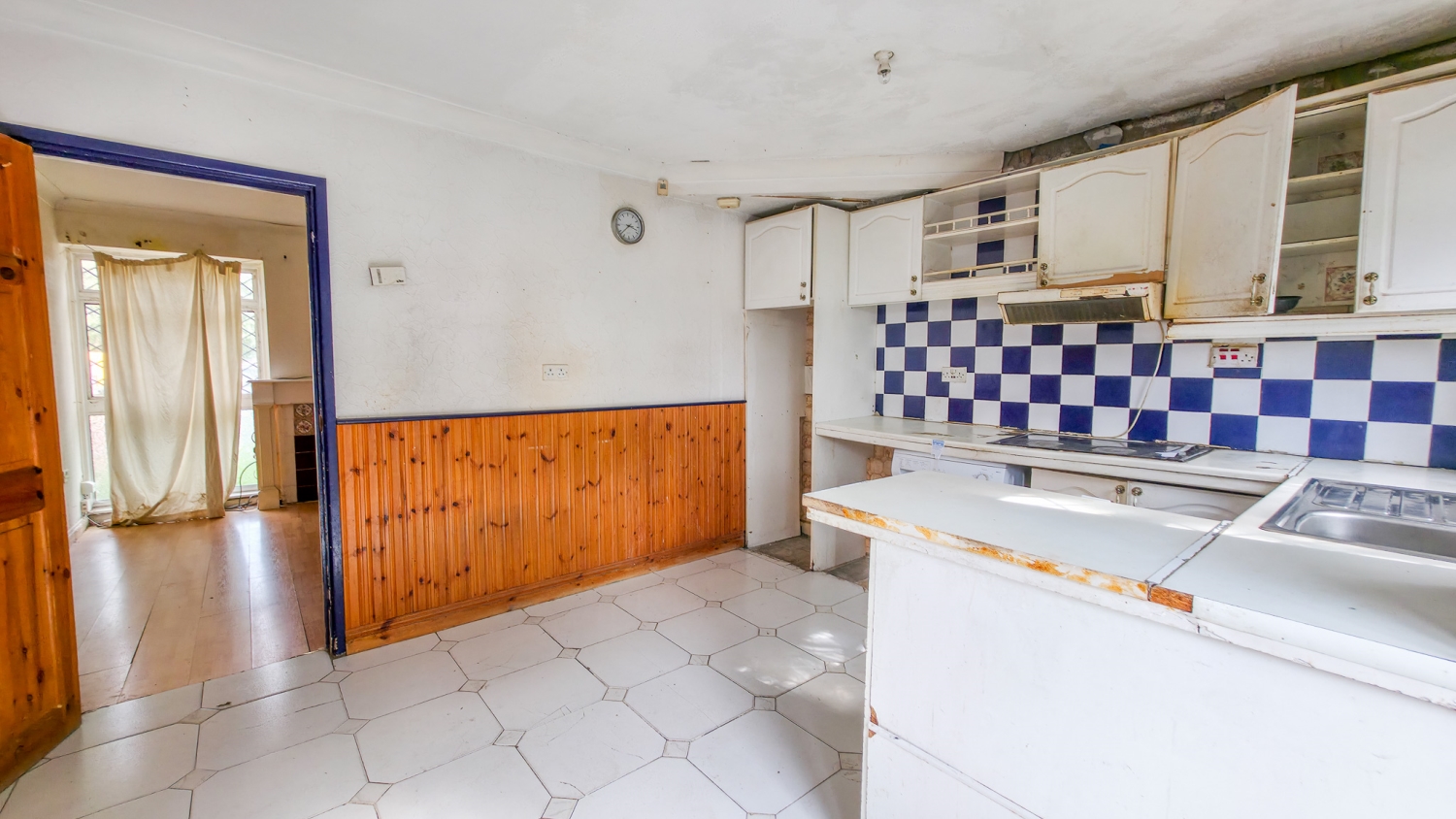 The ground floor features a generously sized living room, enhanced by large windows that allow plenty of natural light to flood the space. To the rear, a functional kitchen/diner provides access to the private garden and could be transformed into a modern family hub with the right vision and refurbishment.