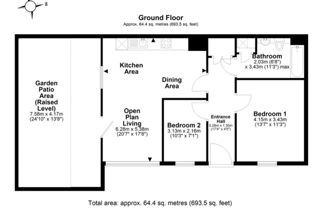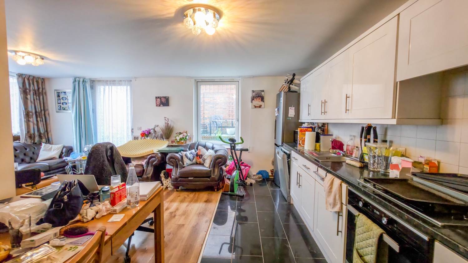 The property itself features open-plan living, creating a bright and sociable space that's perfect for modern lifestyles. The fitted kitchen includes an integrated electric fan oven and gas hob, and both bedrooms are fitted with built-in wardrobes. A private garden offers valuable outdoor space, while lift access ensures easy convenience throughout the building.