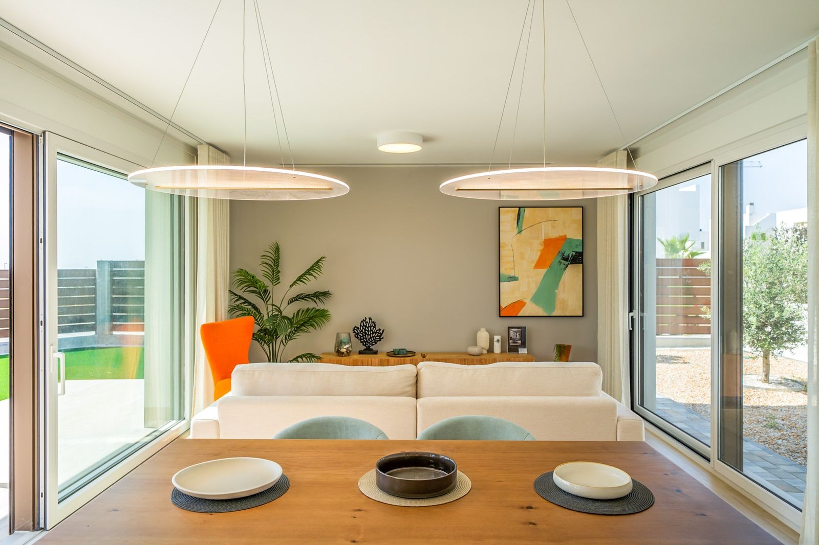 This stunning 4 bedroom Mooi villa comprises of a spacious lounge with patio doors leading out into the private garden complete with a private swimming pool, an open plan kitchen/dining area, laundry room, a master bedroom with en-suite and fitted wardrobes, two further double bedrooms with fitted wardrobes and a guest bathroom.